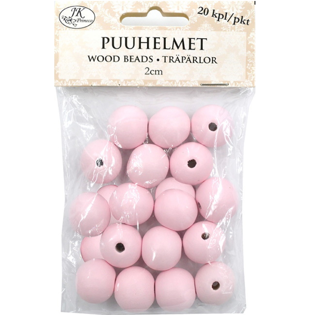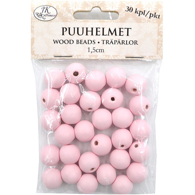 Puuhelmet vaaleanpunainen, 3 eri kokoa