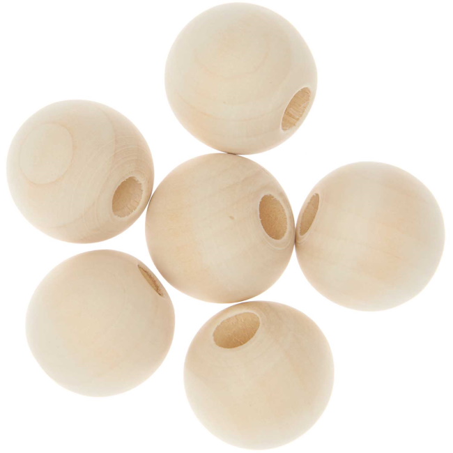 Isoreikäiset puuhelmet ovat ihanteelliset esim. makrametöihin. Helmen koko 30 mm, reikä 10mm. 6 kpl.