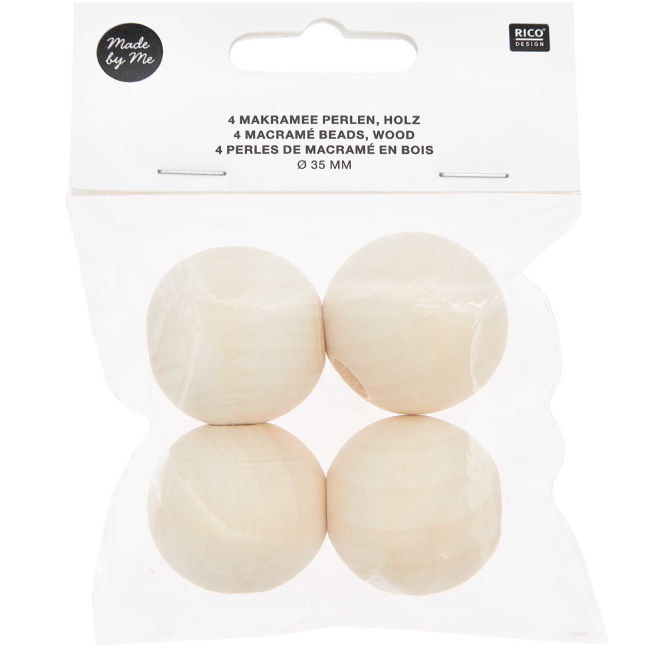 Isoreikäiset puuhelmet ovat ihanteelliset esim. makrametöihin. Helmen koko 35 mm, reikä 10mm. 4 kpl.