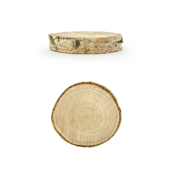Tämä luonnonpuinen kiekko voidaan koristella yksilöllisesti. Pyöreässä kiekossa on edelleen luonnollinen kuori, joka tuo luonnollisen ilmeen. Puukiekkoa voidaan käyttää monella tapaa pöytäkoristeena tai vaikka seinäkoristeena.