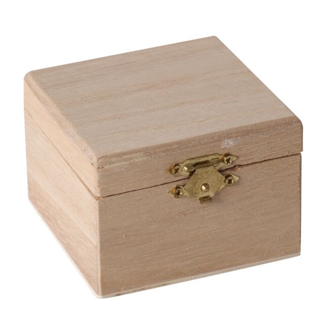 Pieni puulaatikko lukolla, koko 85 x 90 x 60 mm.