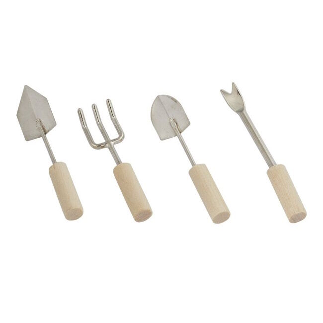 Miniatyyri puutarhatyökalut, n. 3,5 - 4,5 cm, 4 osaa.