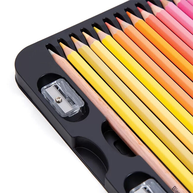 Kuusikulmainen puinen varsi takaa hyvän otteen. Laadukkaan väripigmentin ansiosta kyniä on helppo teroittaa, myös hyvin teräväksi. Paketissa tulee mukana ilmainen teroitin.