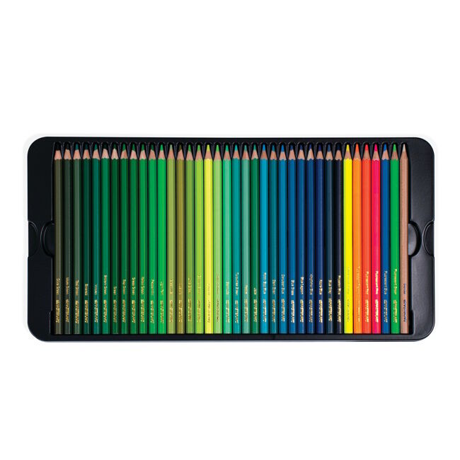 Kuusikulmainen puinen varsi takaa hyvän otteen. Laadukkaan väripigmentin ansiosta kyniä on helppo teroittaa, myös hyvin teräväksi. Paketissa tulee mukana teroitin.