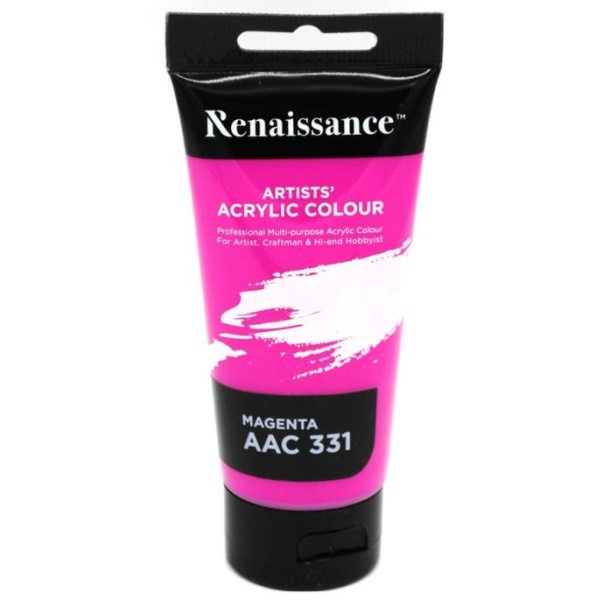 Renaissance akryylimaalit ovat myrkyttömiä ja CE-merkittyjä. Maalit levittyvät helposti ja pigmentti on erittäin peittävää. Kuivuttuaan lopputulos on puolikiiltävä. Maalit ovat vesipohjaisia eli niitä voi halutessaan ohentaa vedellä. Maalit tulevat kätevissä 75 ml muovituubeissa. Pese työvälineet sekä kädet lämpimällä vedellä ja saippualla.