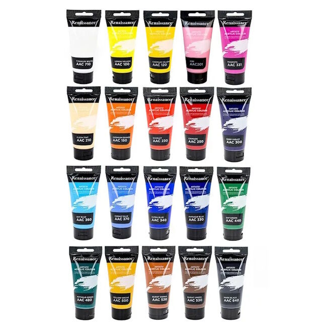 Renaissance akryylimaalit 75ml, 20 eri väriä saatavissa