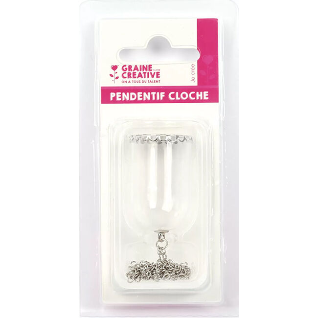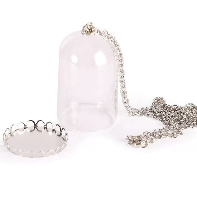 Lasikupu on 4 cm korkea ja siinä on 60 cm:n hopeoitu ketju, jonka lenkkien halkaisija on 2 mm.
