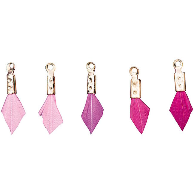 Pienet höyhenet ripustuslenkeillä, koko noin 17mm. 5 kpl.