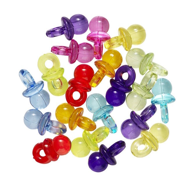 Tuttiriipukset - 20 söpöä ja värikästä helmeä tutin muotoisina! Tutteja voidaan käyttää myös riipuksina/koruina. Nämä helmet ovat hieman suurempia ja niistä tulee mm. hienoja yksityiskohtia rannekoruun, jossa vastasyntyneen lapsen nimi on kirjoitettu kirjainhelmillä. Tuttien leikkisyys tarkoittaa kuitenkin sitä, että ne koristavat mitä tahansa korua. Runsas 4 mm:n reiän halkaisija tekee tuteista parhaita ystäviä Pony Beads -helmiemme kanssa niille, jotka pitävät hieman paksummasta korulangasta. Pakkaus sisältää 20 tuttia 10 eri värissä, kaksi kutakin, jotka ovat 19 mm pitkiä ja 10 mm halkaisijaltaan. Valmistettu muovista.