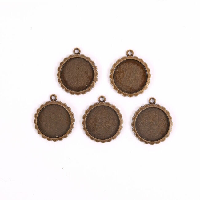 Riipuspohja pronssinväristä metallia. Halkaisija noin 2,7 cm. 5 kpl.