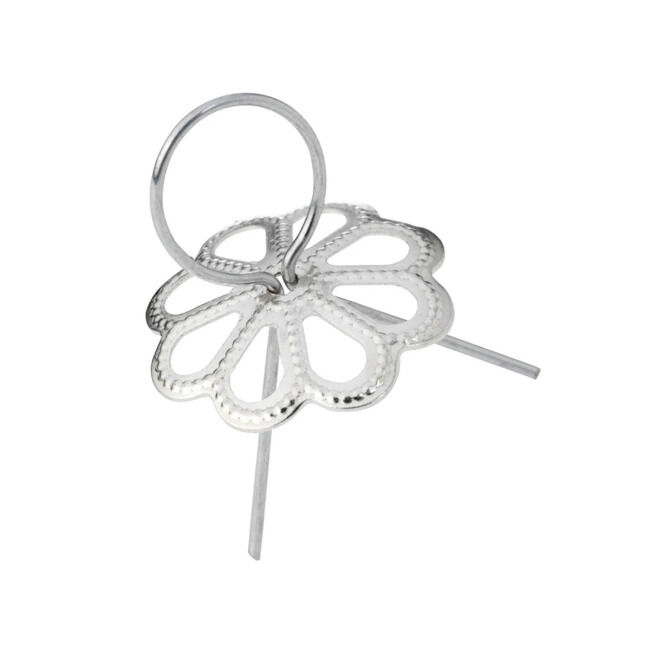 Munaripustin, valmistettu metallista Ø 12 mm. Työnnä tikut munankuoren läpi (tee ensin pieni reikä jollain terävällä esineellä). Pakkauksessa 9 kpl. Hopea.