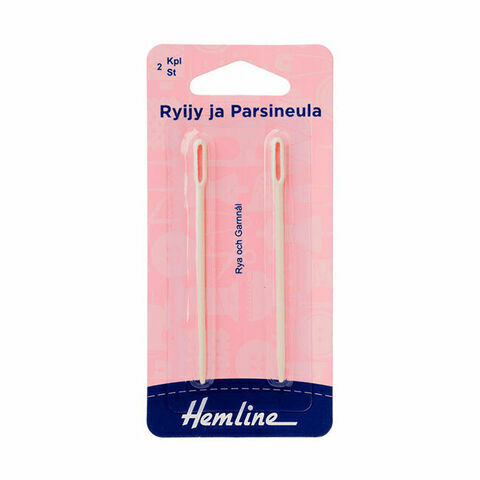 Muovinen neula jonka pituus 72mm. Turvallinen käyttää ja isosilmäinen langanpujotuksen helpottamiseksi. 2 kpl/pkt.