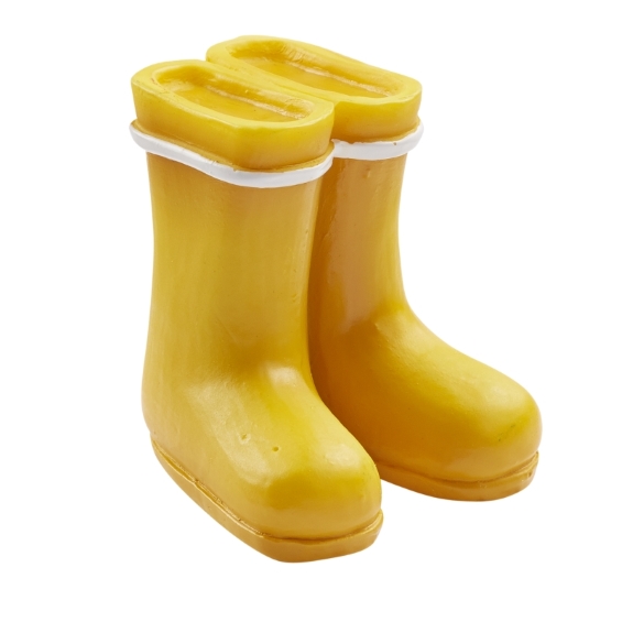 Keltaiset kumisaappaat. Koko 4 x 3 x 3,5 cm.