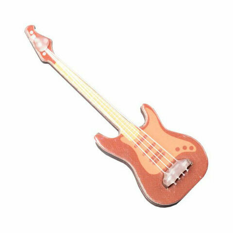 Miniatyyri sähkökitara, koko noin 6,5 x 2 cm.