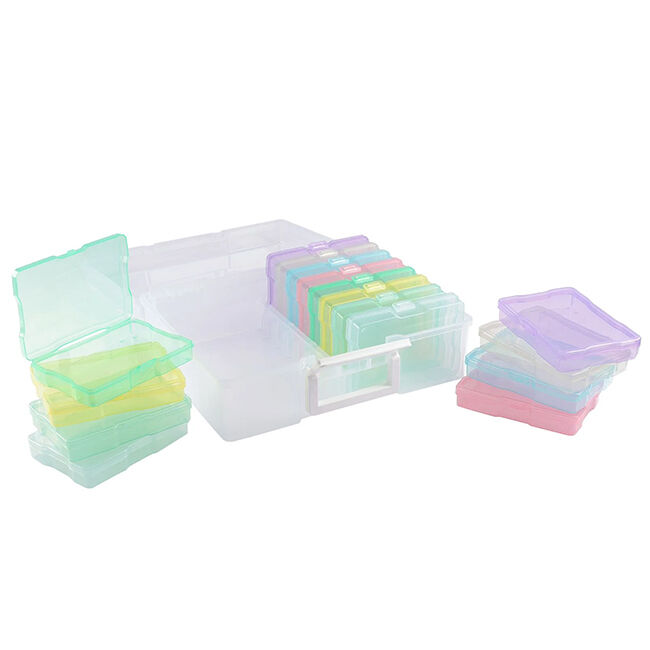 Järjestä leikekuvat, tarrat, korunosat ja muut pienet tarvikkeet tähän kätevään säilytyslaatikkoon. Pienet laatikot ovat hyödyllisiä, jos haluat säilyttää pieniä materiaaleja, jotta ne eivät katoa.
