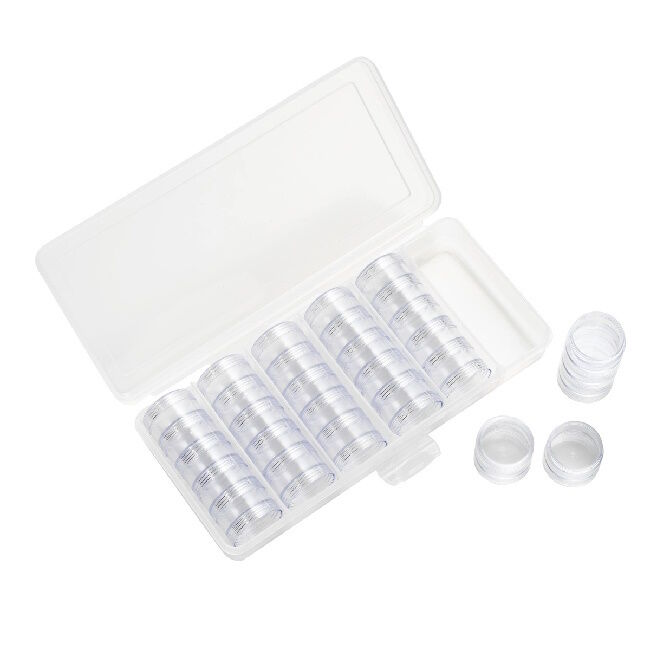 30 pientä säilytyspurkkia todella pienille esineille - ruuveille, helmille, glitterille, korutarvikkeille...