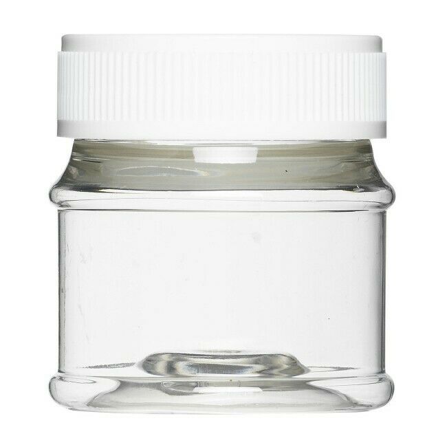 Muovinen säilytyspurkki, kuiville pigmenteille, nestemäisille maaleille jne. Vahvaa kirkasta PET-muovia valkoisella kierrekorkilla. Koko: 50 ml, 47x50mm.