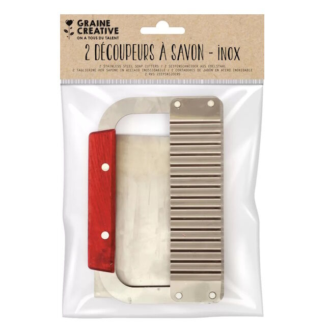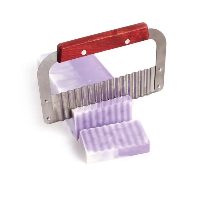 Näillä kahdella saippualeikkurilla voit helposti leikata saippuat ja kiinteät shampoot luoden samalla sileän tai uurretun pinnan. Aseta saippualeikkuri puhtaalle työtasolle kohtisuoraan viipaloitavan tuotteen yläpuolelle. Aseta kätesi kahvalle ja paina sitten alaspäin leikkaaksesi helposti kiinteän kosmetiikkasi läpi.