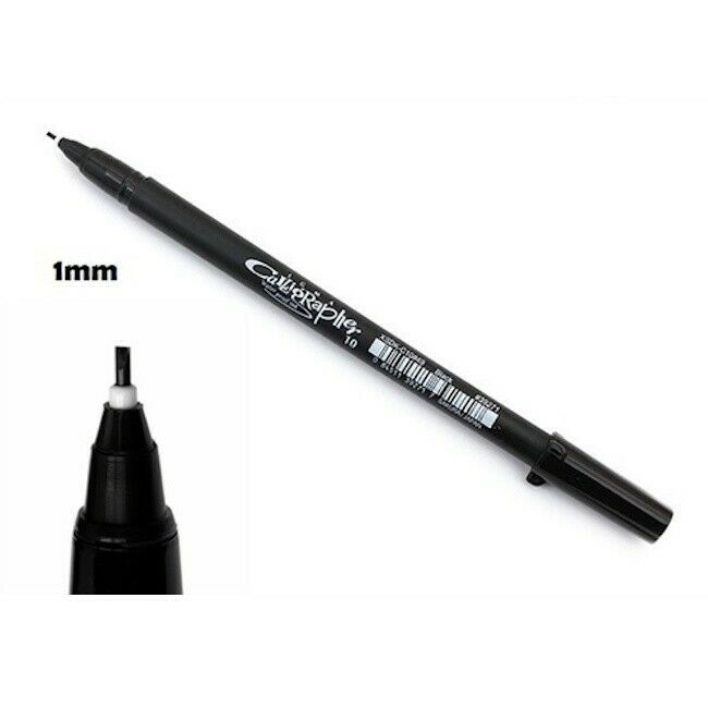Tässä Pigma Calligrapherissa on 1 mm:n kova nailonkärki, joka kestää kovaa painetta ja jatkuvaa käyttöä ja tarjoaa silti luotettavan, tasaisen musteen virtauksen reunasta reunaan. Pigma Calligrapher on kätevä, all-in-one, kestävä kirjoitustyökalu, joka tuottaa terävät reunat ja terävät hiusviivat.
