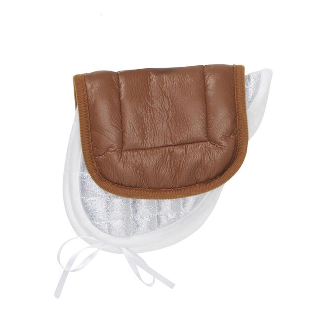 Satulasetti sisältää ruskean keinonahkaisen satulan 24×16 cm, ja valkoisen tikatun satulanalustan 33×19 cm.