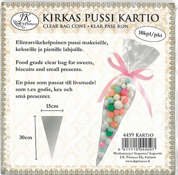 Kartionmallinen kirkas pussi pienien lahjojen paketointiin.