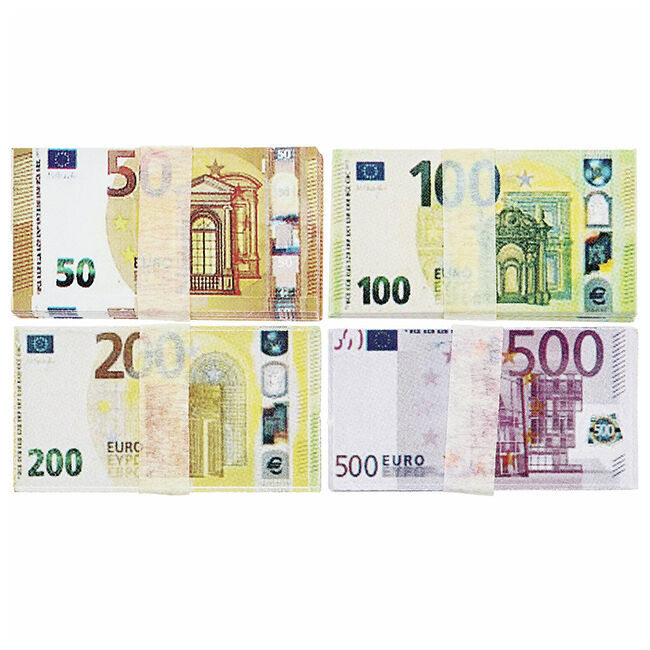 Sisältö: 4 eriväristä rahanippua, joista jokainen sisältää noin 10 seteliä