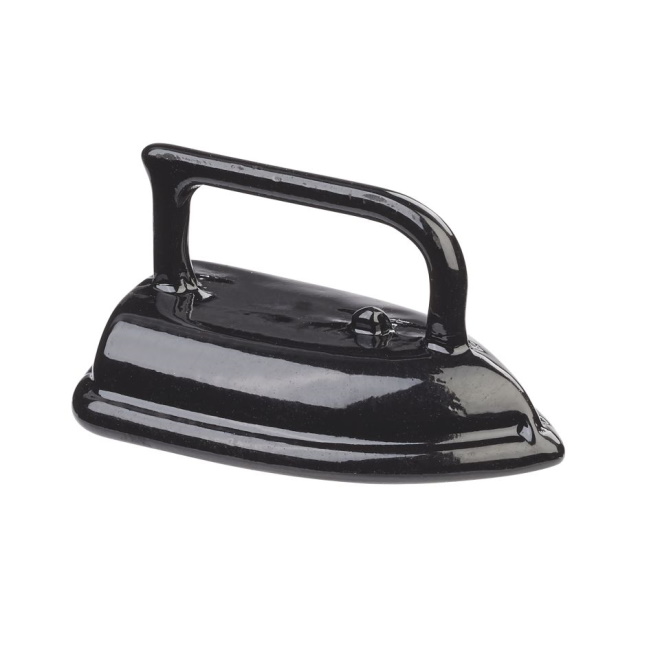 Miniatyyri silitysrauta, 2 x 1,2 x 1,1 cm.