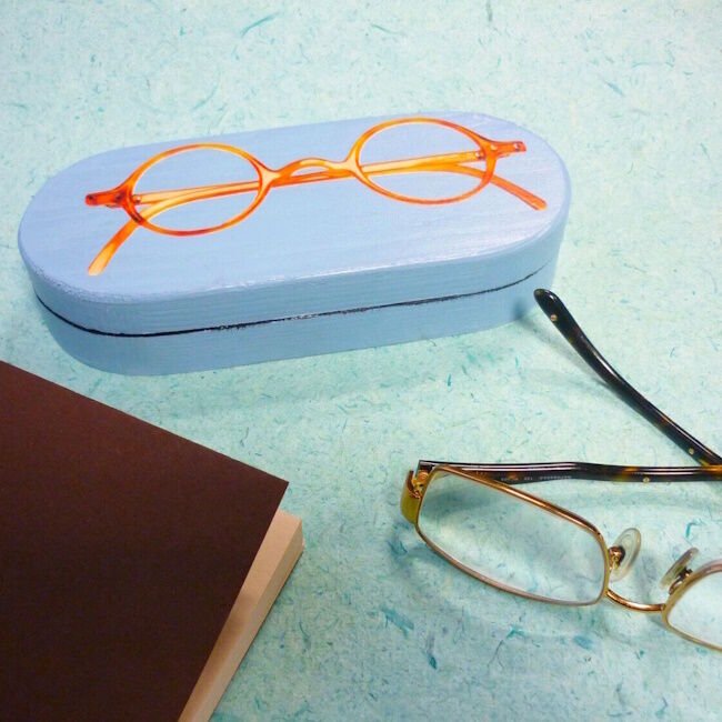 Puinen silmälasikotelo jonka voit koristella mieleiselläsi tavalla. Koko: 18 x 7,5 x 3,5 cm.