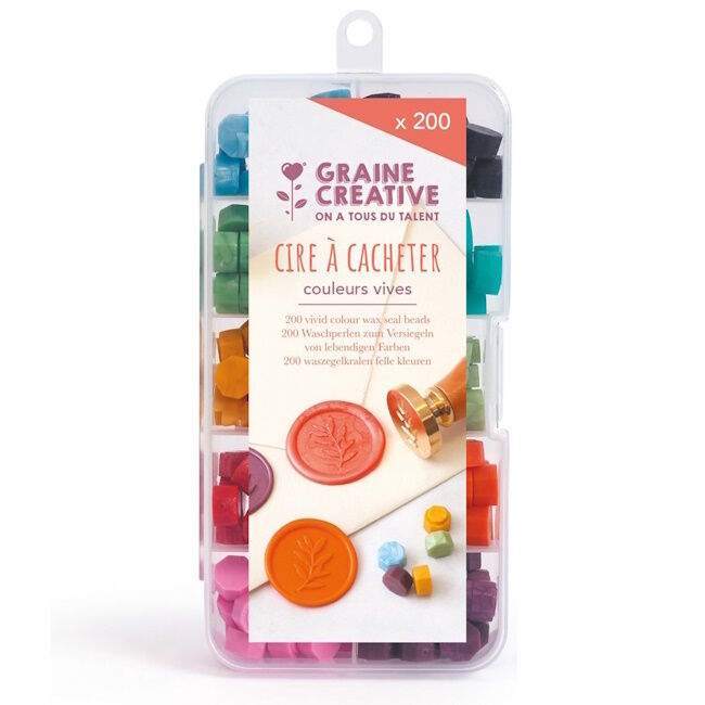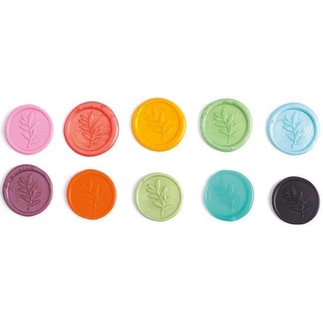 Sinettivahahelmet 10 metallivärissä sinettien valmistukseen. Sinetin tekemiseen riittää 3 helmeä. Aseta 3 helmeä lusikkaan ja lämmitä vaha asettamalla lusikka polttimelle. Kun vaha on muuttunut nestemäiseksi, kaada se pinnalle ja paina siihen sinettileimasin. Anna jäähtyä ja sinetti on valmis! Käytä 3 samanväristä helmeä tai tee marmoroitu sinetti sekoittamalla 3 väriä yhteen. Sekoita tätä varten sulatettua vahaa hetken cocktailtikulla. Kokeile eri värejä!