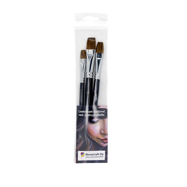 Novacraft sivellinsetti sisältää kolme tasapäistä sivellintä (koot 12, 18 ja 24). Siveltimet ovat lyhytvartisia, niiden karva on 60 % hevosenkarvaa ja 40 % keinokuitua. Siveltimet imevät hyvin vettä.
