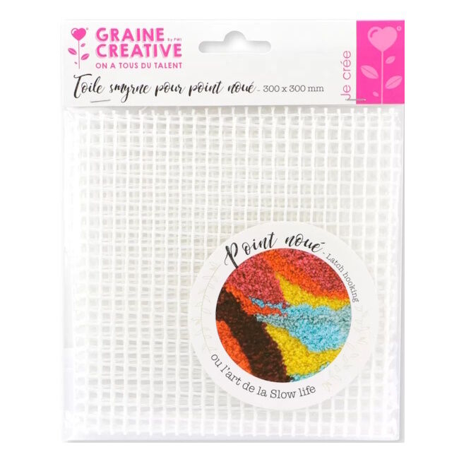 30 x 30 cm Smyrne-kangas sopii täydellisesti solmittujen mattojen tekemiseen erikoiskoukulla.