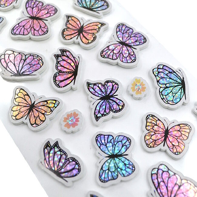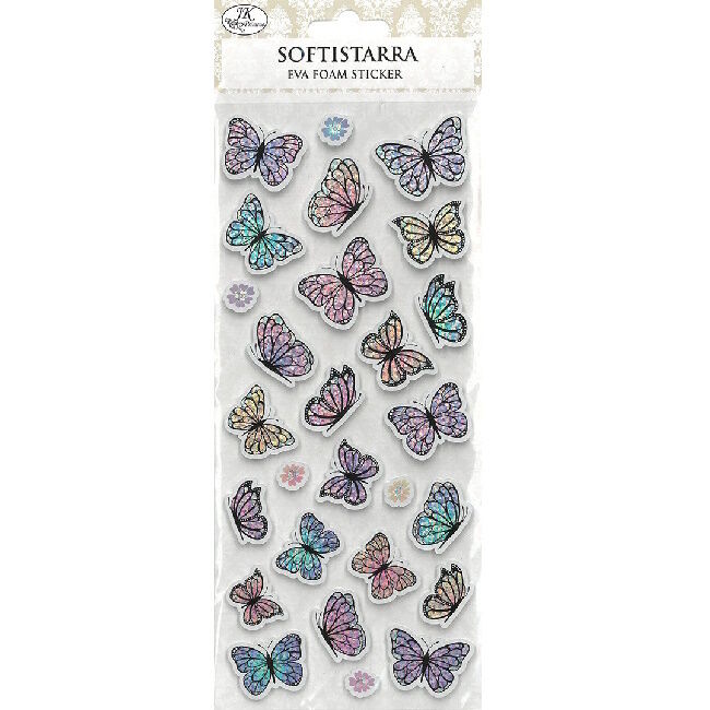 Pehmeät softistarrat askarteluun ja koristeluun. Tarroissa hologrammipinta.