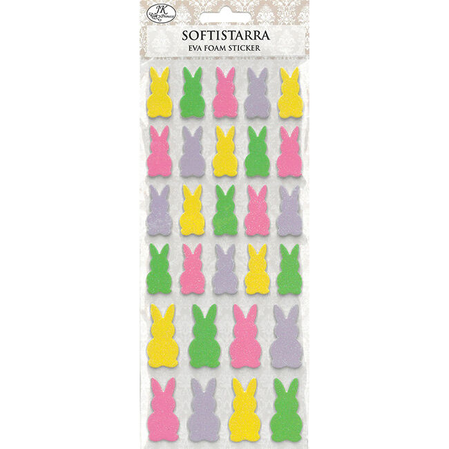 Pehmeät softistarrat askarteluun ja koristeluun. Pakkaus sisältää yhden arkin vaahtomuovisia softistarroja, joissa on glitteriä.