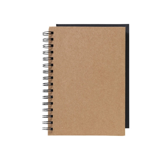 Spiraalisidottu vihko. Kannet ruskeata paksua pahvia. 30 arkkia mustaa, hapotonta kartonkia, neliöpaino 200 g.