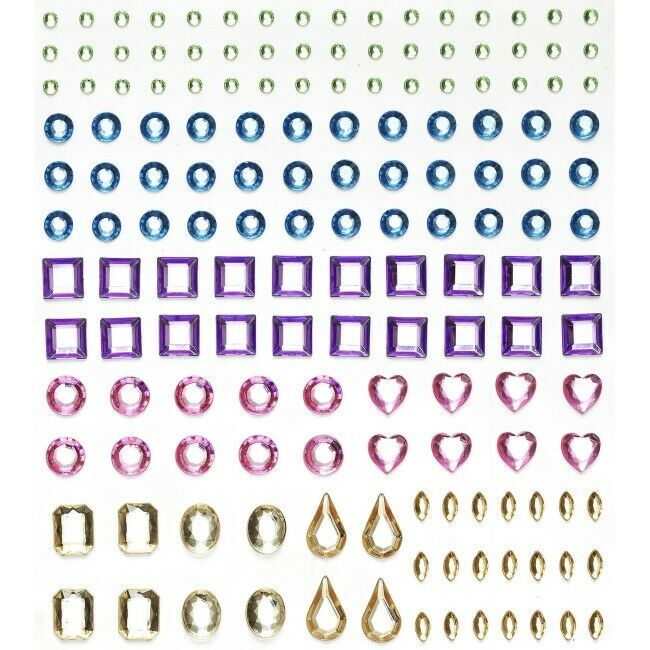 Erimuotoisia ja -kokoisia strassitarroja. Tarrat ovat 2-12 mm ja pakkaus sisältää 304 läpinäkyvää pastellitarraa. Pakkaus sisältää 2 arkkia 12×13,5 cm ja helmet on valmistettu akryylistä.