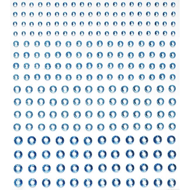 Pyöreitä strassitarroja neljässä eri koossa - Ø3, 4, 5, 6 mm, yhteensä 496 läpinäkyvää tarraa, jotka ovat itsekiinnittyviä. Pakkaus sisältää 2 arkkia 12×13,5 cm ja helmet on valmistettu akryylistä.