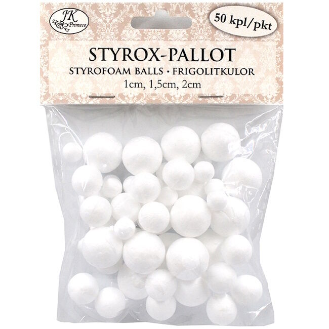 Styrox-pallolajitelma askarteluun ja käsitöihin.