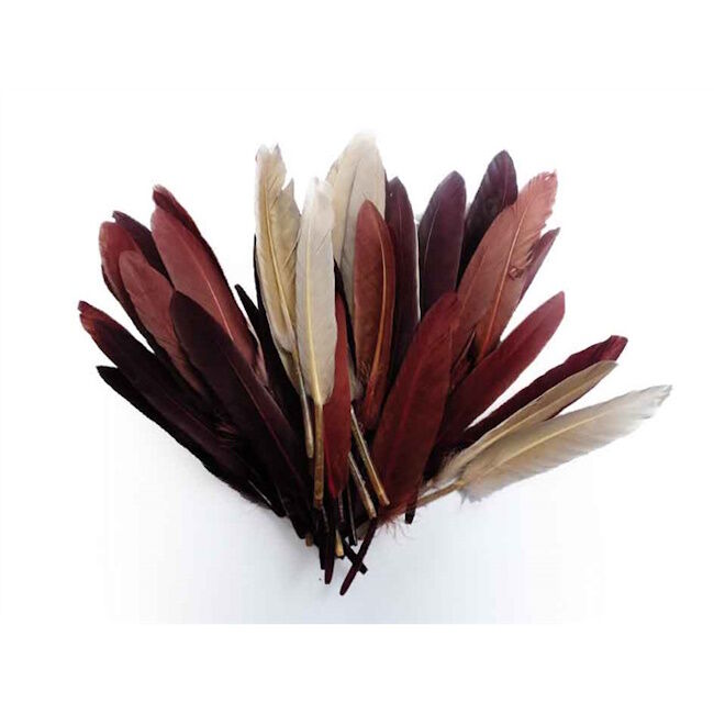 10 g ruskeansävyisiä sulkia. Pituus noin 15 cm.