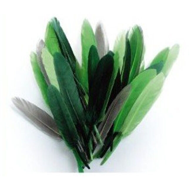 10 g vihreänsävyisiä sulkia. Pituus noin 15 cm.