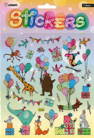 Lajitelma erilaisia tarroja askarteluun ja koristeluun.