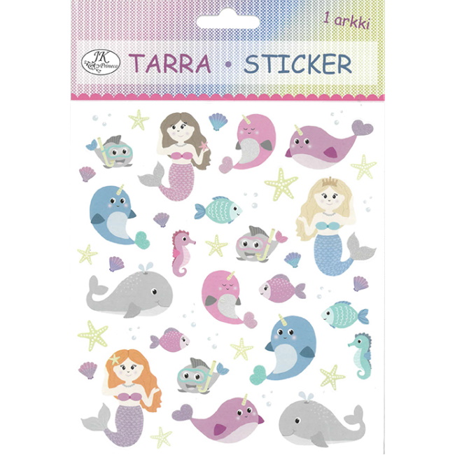 Lajitelma erilaisia tarroja askarteluun ja koristeluun.