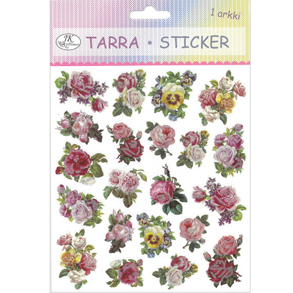 Lajitelma erilaisia tarroja askarteluun ja koristeluun.