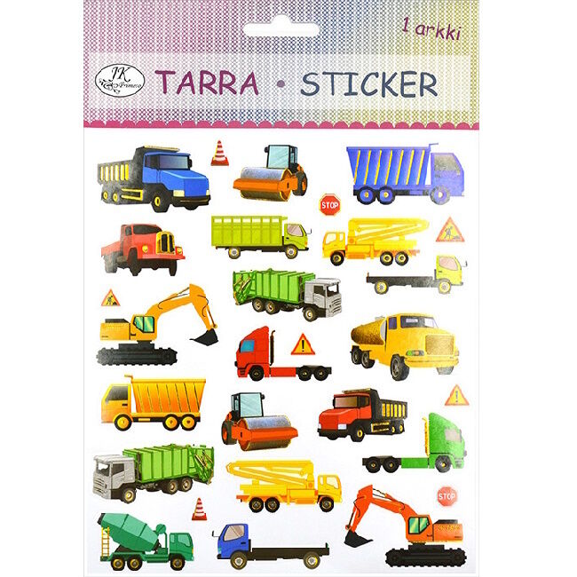 Lajitelma erilaisia tarroja askarteluun ja koristeluun.