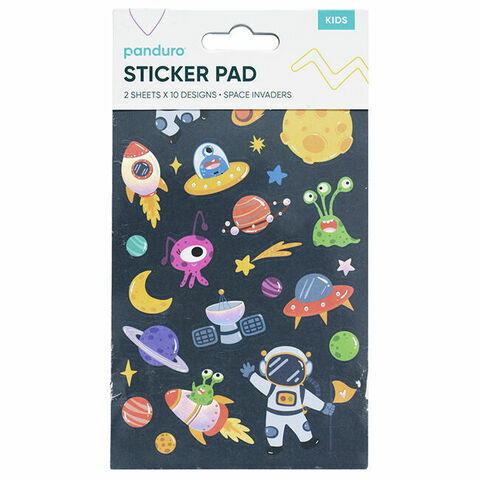 Tarrelehtiö, upea määrä hienoja paperitarroja käytännöllisessä 20 arkin blokissa! Teemana on avaruus, avaruusolennot, planeetat, lautaset, raketit ja koko galaksi, ja yksityiskohtia on hohtavia metallisia.