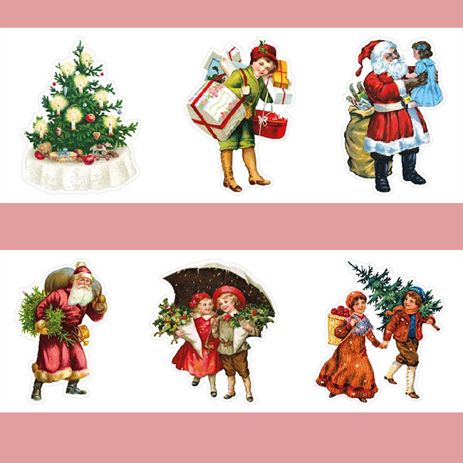 Läpinäkyvät tarrat rullassa, Vintage Christmas - Celebration.