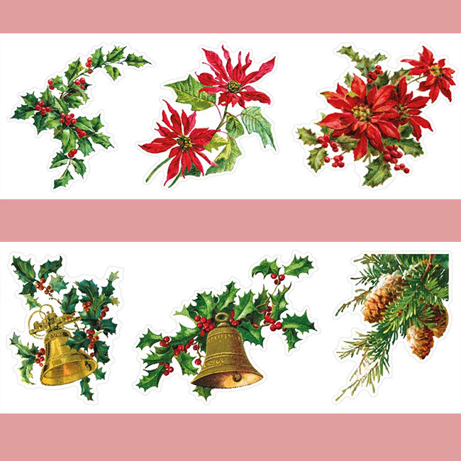 Läpinäkyvät tarrat rullassa, Vintage Christmas - Greens.