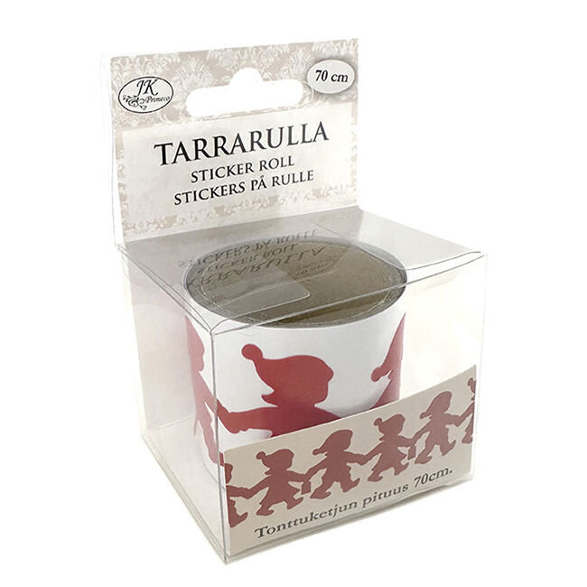 Pakkaus sisältää yhden paperisen tarrarullan, jonka pituus on 70 cm ja korkeus n. 4 cm.