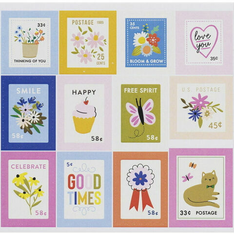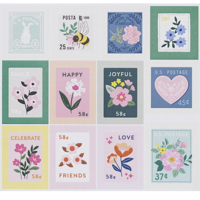 Tarroja klassisten postimerkkien muodossa! Pakkaus sisältää kaksi 13,5 × 12 cm:n arkkia, jotka on täytetty erilaisilla kuvioilla.