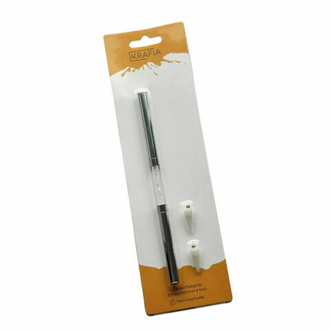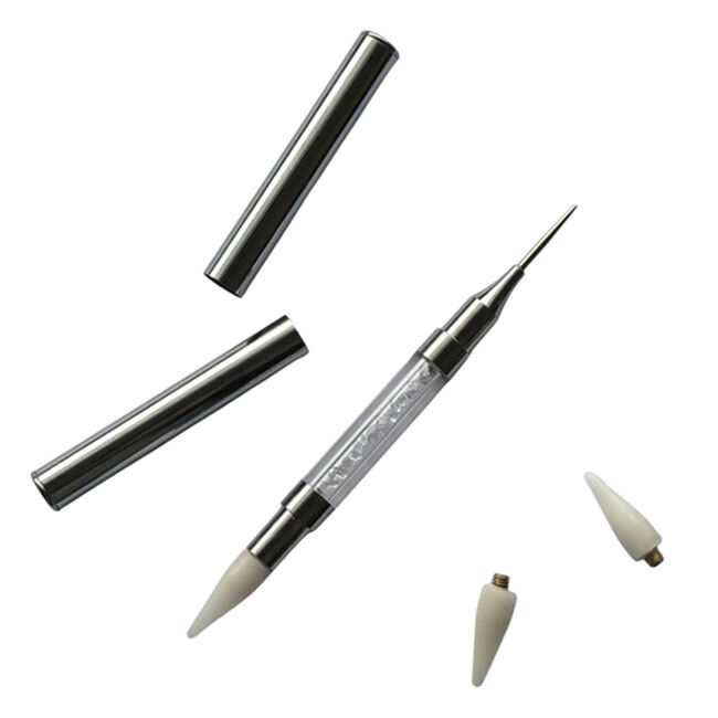 Kaksipäinen (toisessa pääässä piikki, toinen vahaa) tartuntatyökalu / tahmakynä helpottamaan pienten koristeiden poimimista ja asettelua,
