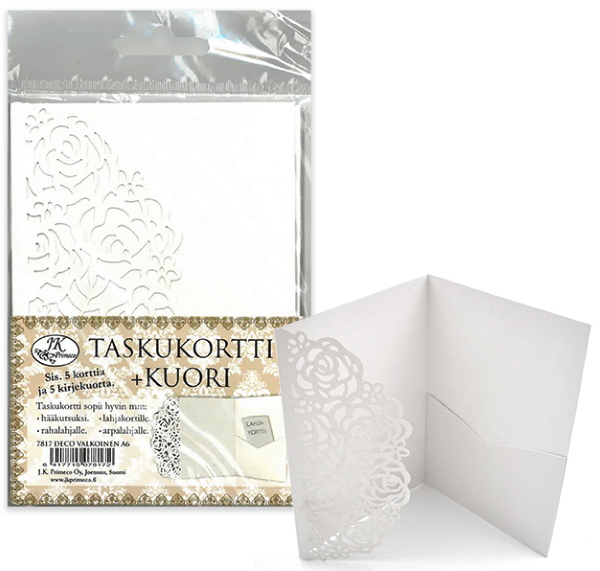 | Taskukortti + kuori, deco, valkoinen, 5+5 | ||||